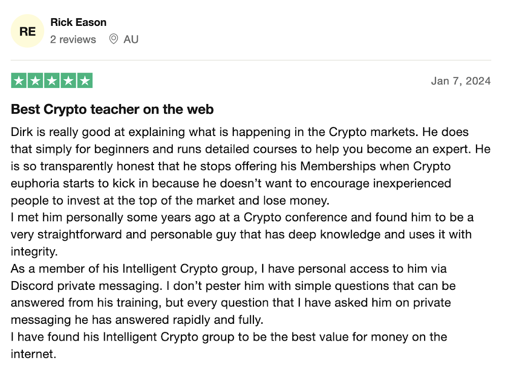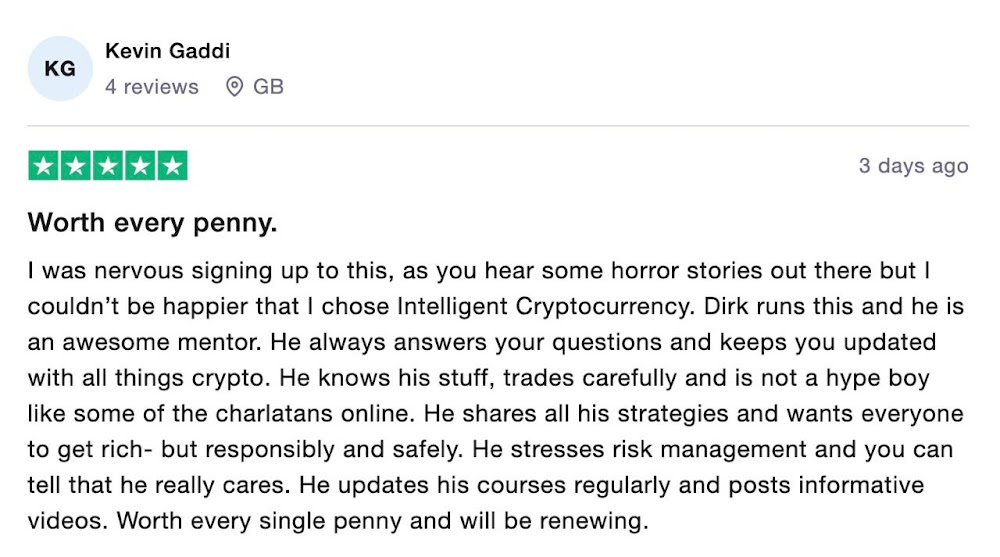 Through it all, I’ve learned how to trade profitably, regardless of the market. That’s why I created Intelligent Cryptocurrency: to share what works, and help people like you build lasting wealth."