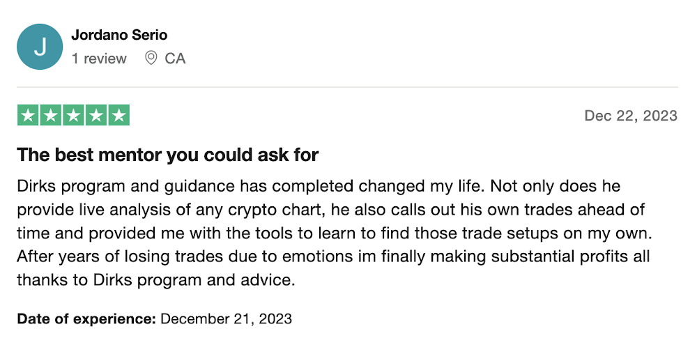 Daily charts, market updates, and ongoing mentorship, with direct access to Dirk and 24/7 support — help, fast replies, guidance.