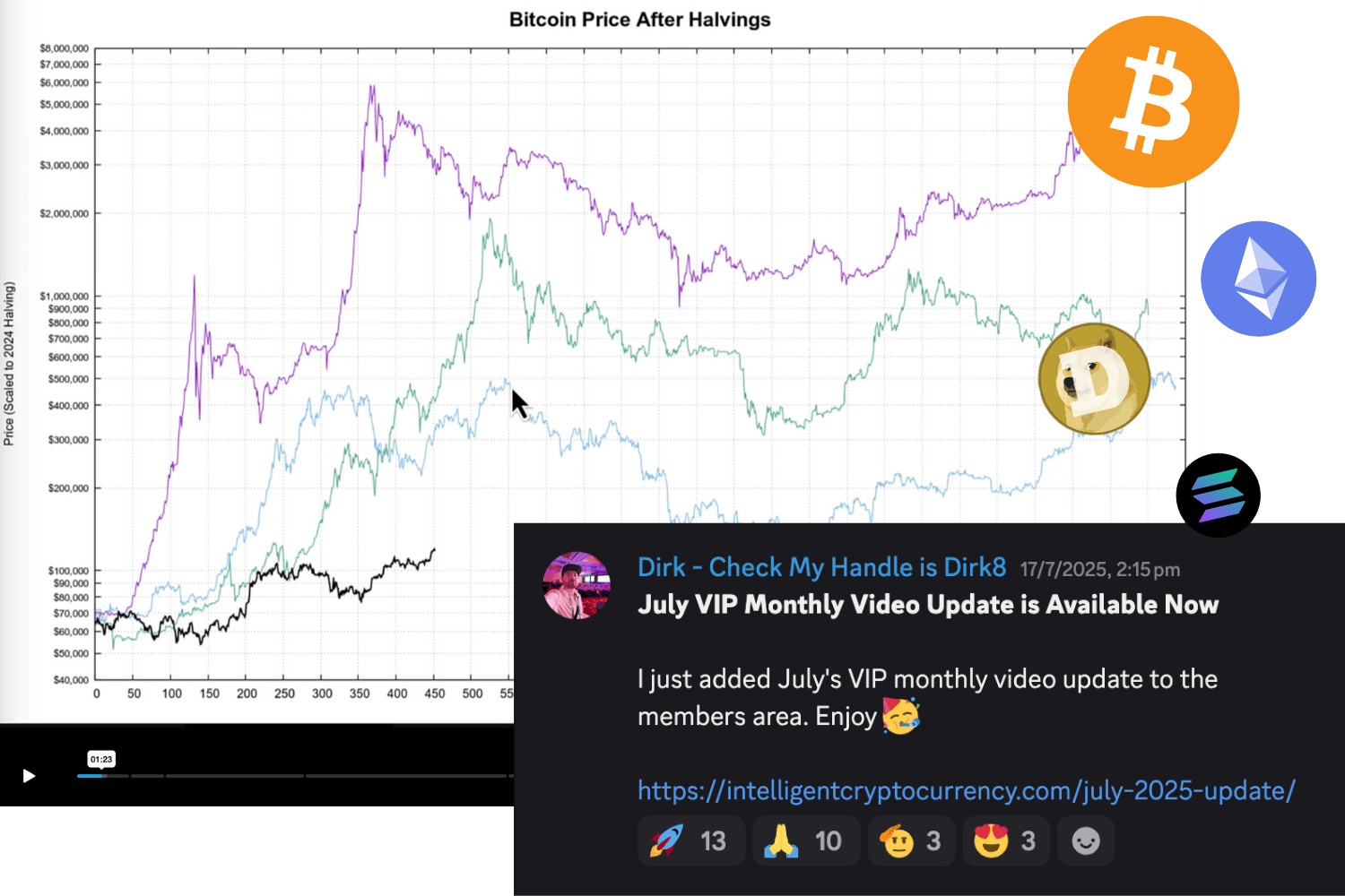Get Dirk’s monthly crypto update w/ trends, key technical levels, and trading insights — streamed on-demand inside your VIP dashboard.