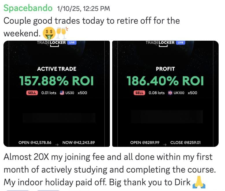 Follow Dirk’s real-time forex, stock, and metals ideas shared in a private VIP channel — ideal for those trading funded accounts or diversifying.