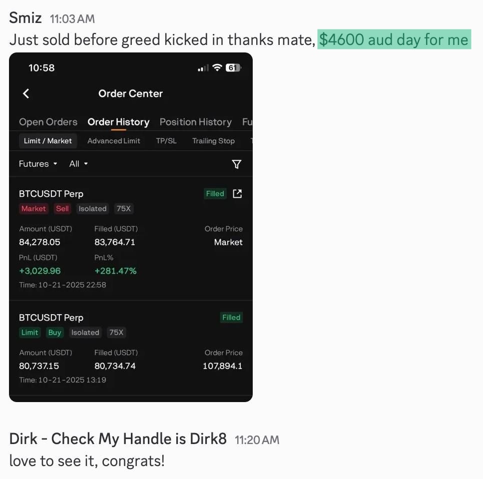 See Dirk’s real-time spot and futures trade setups with plan, risk, and execution shared step-by step — all for education to sharpen your own strategy.